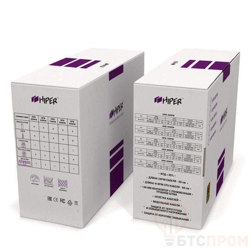 Блок питания HPB-800FM PSU HPB-800FM (ATX 2.31 800Вт ActivePFC 140мм fan Full-modular Black) 80+ BOX HIPER 1000556656
