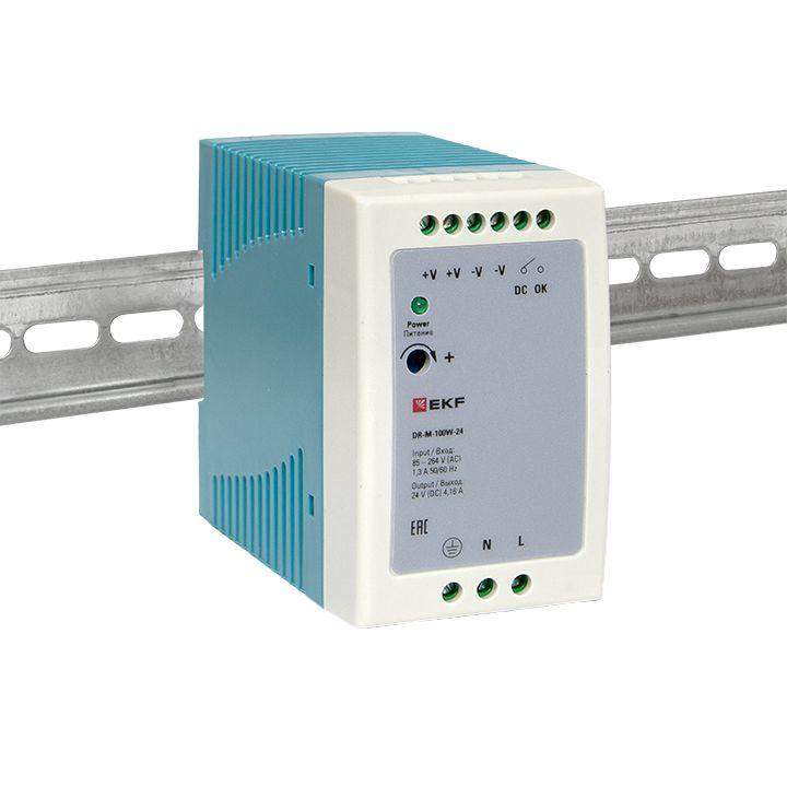 Блоки питания серии DR напряжениями 5/12/24/48 В, EKF устанавливаются на DIN рейку и предназначены для преобразования входного переменного напряжения 100-240 В в постоянное стабилизированное напряжение 5,12,24 или 48 Вольт.