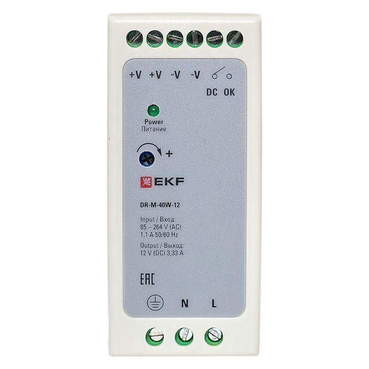 Блоки питания серии DR напряжениями 5/12/24/48 В, EKF устанавливаются на DIN рейку и предназначены для преобразования входного переменного напряжения 100-240 В в постоянное стабилизированное напряжение 5,12,24 или 48 Вольт.