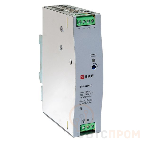 Блок питания на DIN-рейку 75Вт Uвх ~ 220В AC Uвых - 12В DC постоянного тока EKF DR-E-75W-12 фото в каталоге от BTSprom.by
