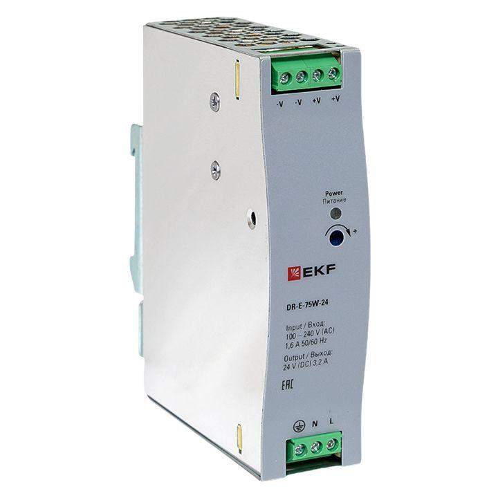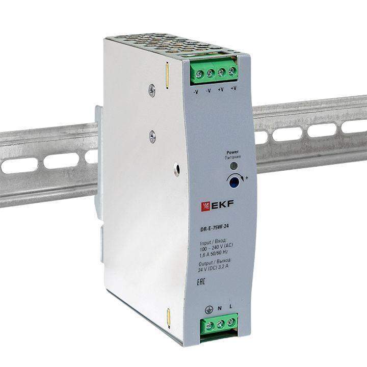 Блоки питания серии DR напряжениями 5/12/24/48 В, EKF устанавливаются на DIN рейку и предназначены для преобразования входного переменного напряжения 100-240 В в постоянное стабилизированное напряжение 5,12,24 или 48 Вольт.