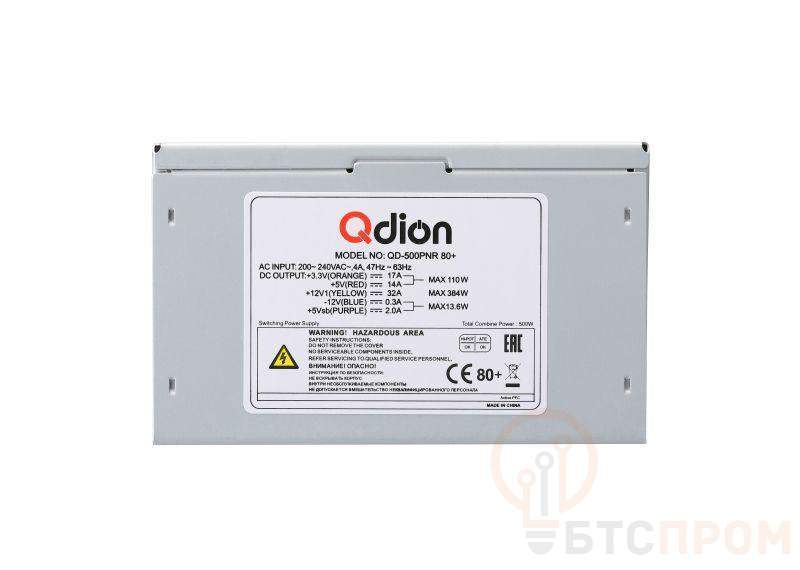 Блок питания QD-500PNR 80+ Power Supply QDION ATX 500Вт 120мм 5xSATA 1xPCI-E APFC 80+ FSP 1000575571