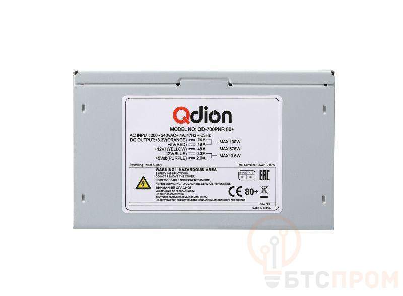 Блок питания QD-700PNR 80+ Power Supply QDION ATX 700Вт 120мм 5xSATA 2xPCI-E APFC 80+ FSP 1000625181