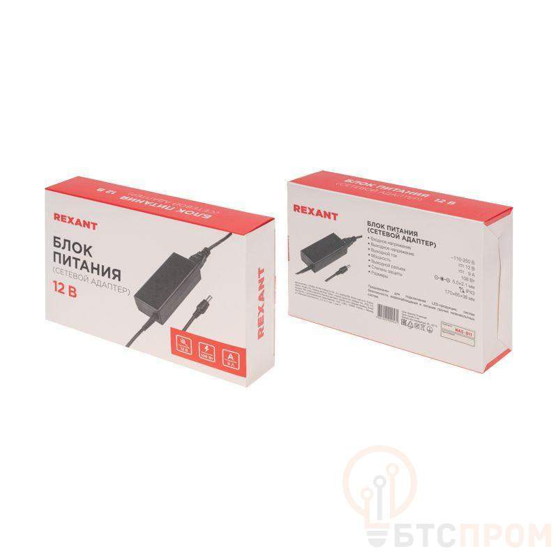 Источник питания 110-220В AC/12В DC 9А 100Вт с DC разъемом подключения 5.5х2.1 без влагозащ. IP23 Rexant 200-100-3