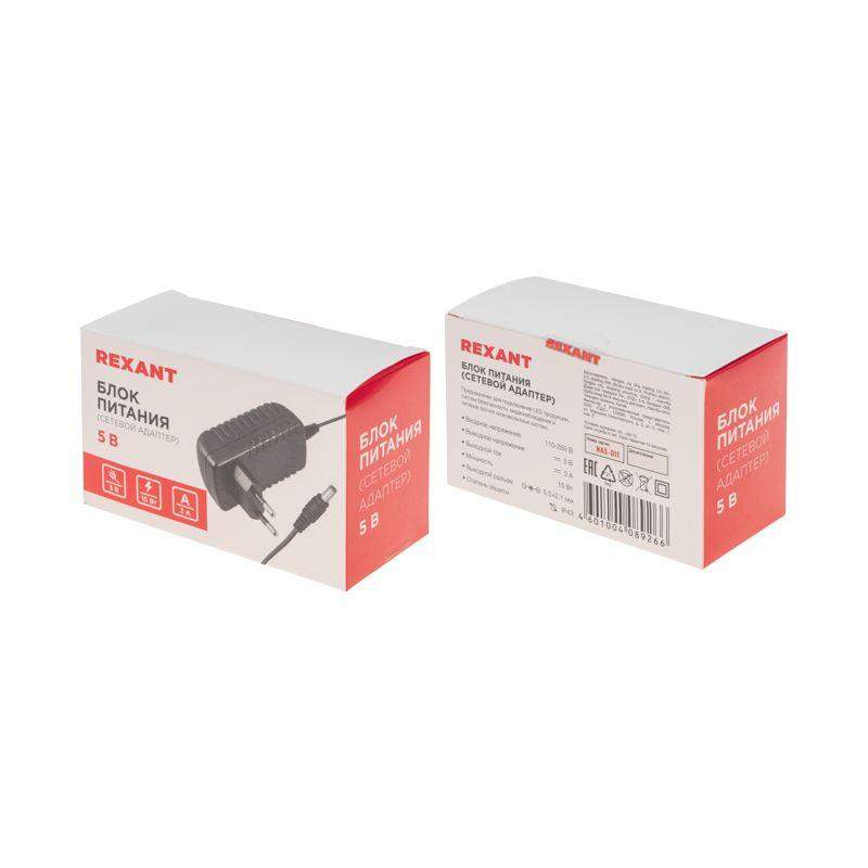 Источник питания 110-220В AC/5В DC 3А 15Вт с DC разъемом подключения 5.5х2.1 без влагозащ. IP23 Rexant 200-024-5