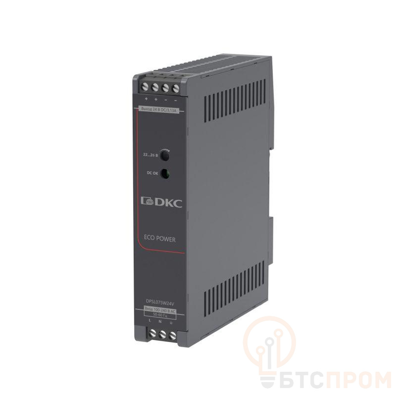 Источник питания "ECO POWER", однофазный, 75Вт, 24В используется для электропитания оборудования, а также для обеспечения защиты от короткого замыкания, перегрузки и перенапряжений со стороны входной и выходной линии.