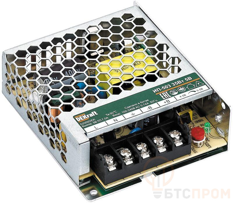 ИП-503 — это источник импульсный питания из серии ИП-500. Первичный импульсный источник питания имеет входное напряжение в широком диапазоне: 100–264 В переменного тока, номинальное входное напряжение составляет 230 В переменного тока (автоматический выбор). Номинальная выходная мощность 35 Вт, номинальный выходной ток 0,73 А при выходном напряжении 48 В постоянного тока. Выходное напряжение регулируется в диапазоне от 43,2 до 52,8 В постоянного тока. Источник питания обеспечивает выходную характеристику U/I.