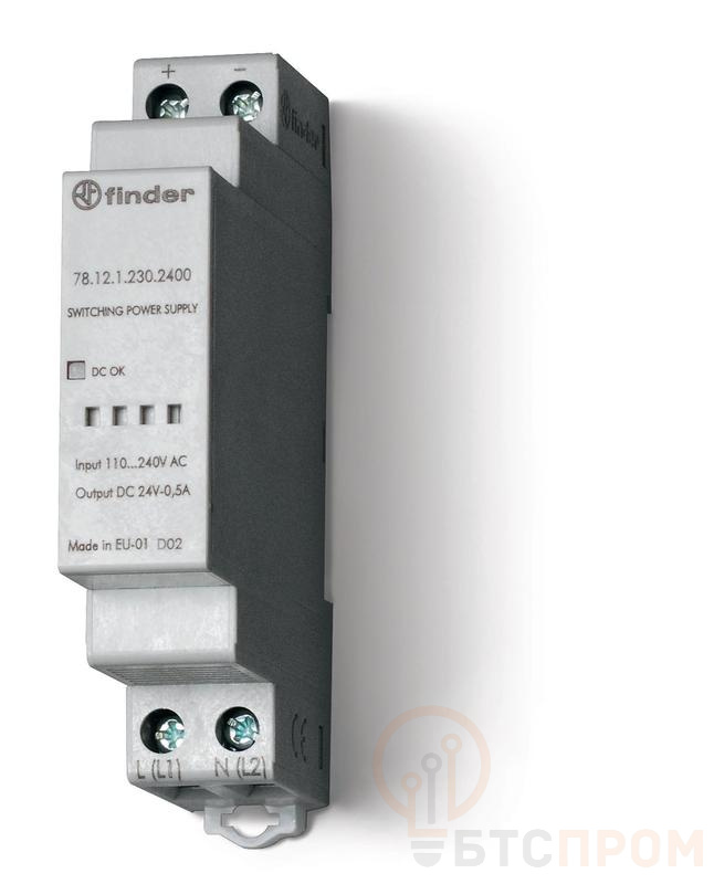 Источник питания импульсный вход 110...240В AC / выход 12В DC 12Вт модульный 17.5мм IP20 FINDER 781212301200PAS