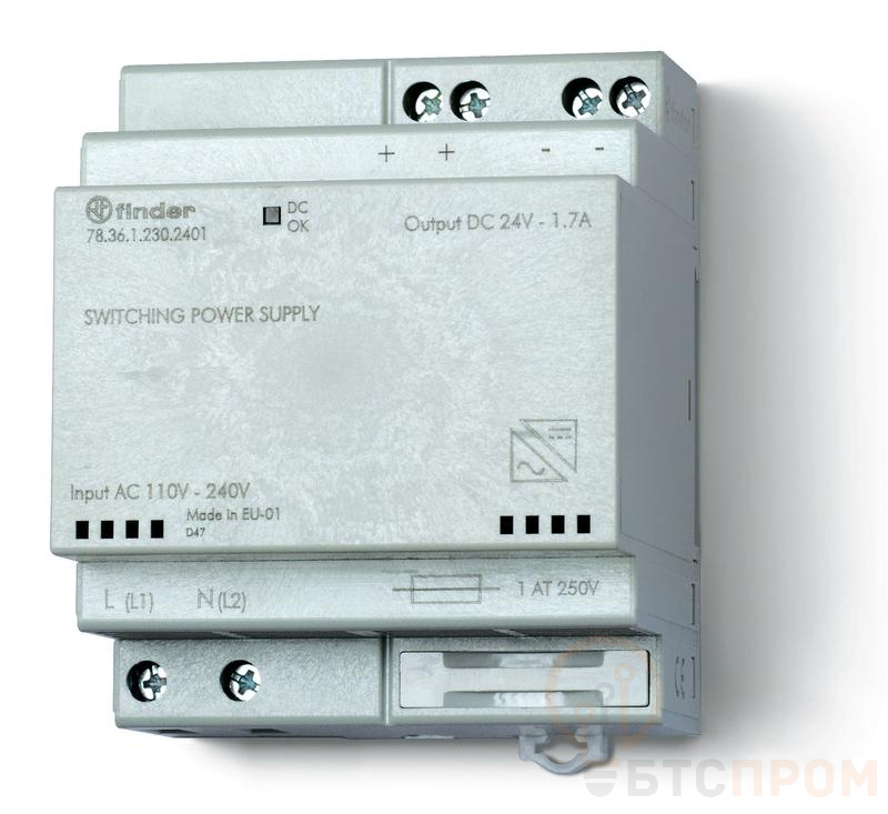 Источник питания импульсный вход 110...240В AC / выход 24В DC 36Вт модульный 70мм предохранитель входой цепи IP20 FINDER 783612302401