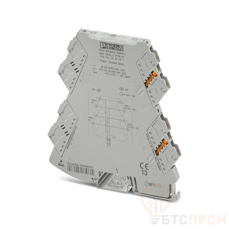 Модуль питания клеммный MINI MCR-2-PTB-PT Phoenix Contact 2902067 фото в каталоге от BTSprom.by