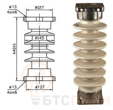 Ключевые характеристики: тип — С4-195, материал — электрофарфор, обеспечивающий высокие диэлектрические свойства, механическую прочность и устойчивость к атмосферным воздействиям. Конструкция изолятора включает металлические арматурные детали для надежного монтажа.