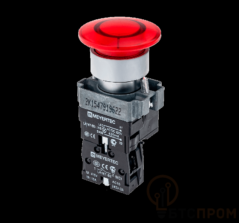 Ключевая особенность — механизм без фиксации (моментального действия), который возвращается в исходное положение после отпускания. Коммутационная способность определяется 1 нормально замкнутым (1NC) контактом. Данная кнопка предназначена для использования в цепях управления станками, промышленными линиями, в системах сигнализации и качестве аварийного выключателя (стоп-кнопки) на щитах и пультах управления.