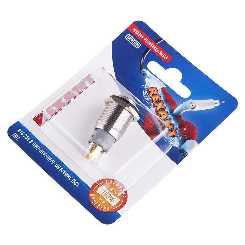Кнопка антивандальная d16 250В без фикс. (5с) (ON)-OFF/(OFF)-ON зел. (A-16-C4) блист. Rexant 06-0353-A