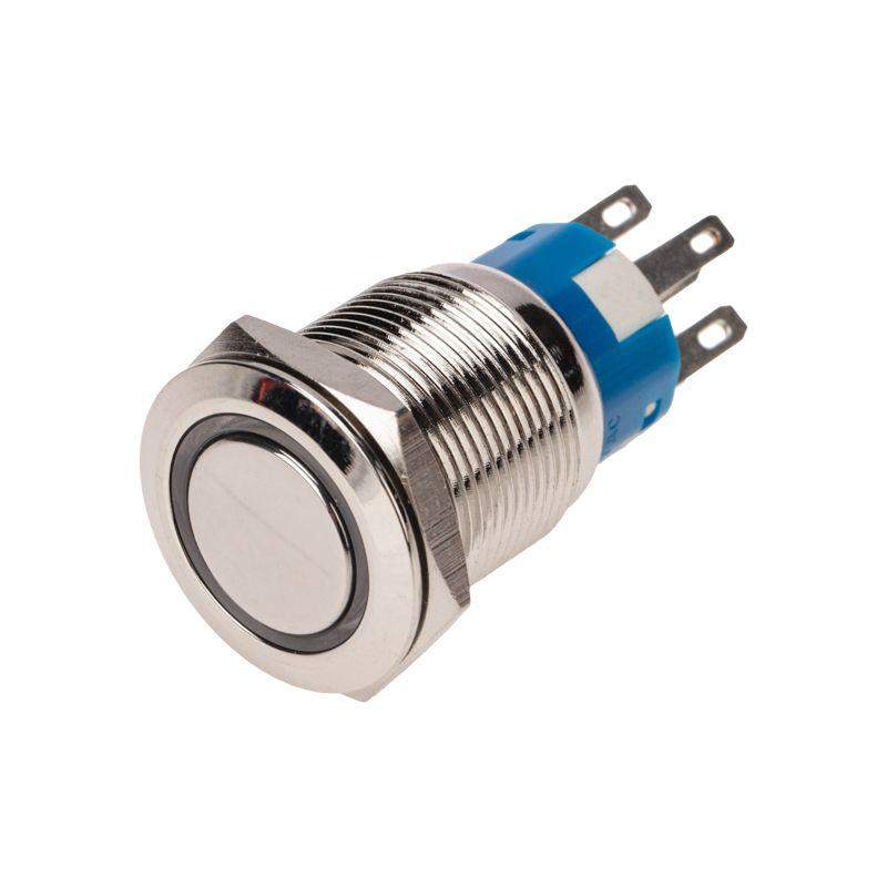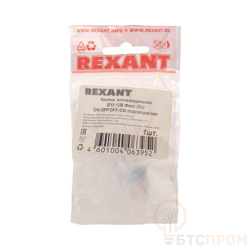 Выключатель-кнопка антивандальная O19 Фикс 12В(LED) (5с) OFF-ON/ON-OFF подсв/красная REXANT предназначена для коммутации электрических цепей путем включения-выключения питающего провода. Металлические кнопки применяются в местах, где существует большой риск их повреждения (на различных производственных линиях, в лифтовых кабинах, около входной двери и т.д.), а также для декоративного оформления панелей управления. Главными отличительными особенностями такой кнопки являются металлическое исполнение и неуязвимость контактной группы, что обеспечит ей долговечное функционирование. Изделие состоит из двух основных частей - лицевой части (головки) и контактной, и имеет пружинный возвратный механизм. Монтаж осуществляется без применения винтов на плоских панелях толщиной от 0.5мм до 10мм. Подключение проводов осуществляется с помощью винтовых зажимов, пайки или разъемом. Основные характеристики: Номинальное напряжение: 250В; Номинальный ток: 5A; Подсветка:12V LED Тип переключения: OFF-ON/ON-OFF; Количество контактных групп: 1; Количество контактов в контактной группе: 3; Фиксация положений: есть; Индикатор коммутационных положений: красный; Установочный диаметр: 19мм; Рабочая температура: от -25? до +85?; Степень защиты (IP): IP67; Ресурс: 10 000 циклов. Преимуществами использования данного изделия является надежность, быстрота и удобство монтажа.