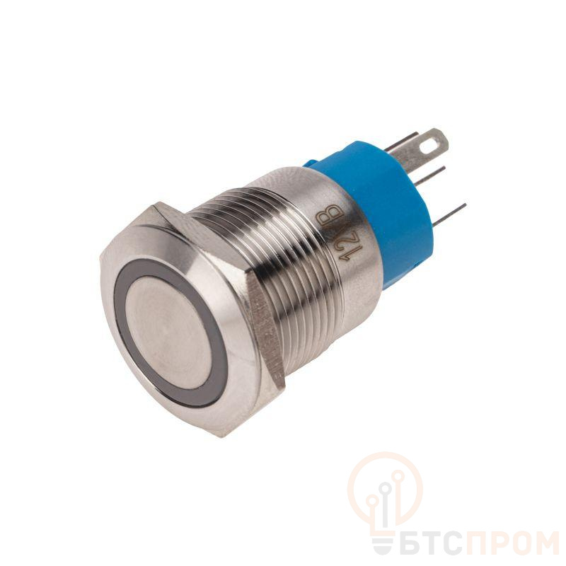 Выключатель-кнопка антивандальная O19 Фикс 12В(LED) (5с) OFF-ON/ON-OFF подсв/синяя REXANT предназначена для коммутации электрических цепей путем включения-выключения питающего провода. Металлические кнопки применяются в местах, где существует большой риск их повреждения (на различных производственных линиях, в лифтовых кабинах, около входной двери и т.д.), а также для декоративного оформления панелей управления. Главными отличительными особенностями такой кнопки являются металлическое исполнение и неуязвимость контактной группы, что обеспечит ей долговечное функционирование. Изделие состоит из двух основных частей - лицевой части (головки) и контактной, и имеет пружинный возвратный механизм. Монтаж осуществляется без применения винтов на плоских панелях толщиной от 0.5мм до 10мм. Подключение проводов осуществляется с помощью винтовых зажимов, пайки или разъемом. Основные характеристики: Номинальное напряжение: 250В; Номинальный ток: 5A; Подсветка:12V LED Тип переключения: OFF-ON/ON-OFF; Количество контактных групп: 1; Количество контактов в контактной группе: 3; Фиксация положений: есть; Индикатор коммутационных положений: синий; Установочный диаметр: 19мм; Рабочая температура: от -25? до +85?; Степень защиты (IP): IP67; Ресурс: 10 000 циклов. Преимуществами использования данного изделия является надежность, быстрота и удобство монтажа.
