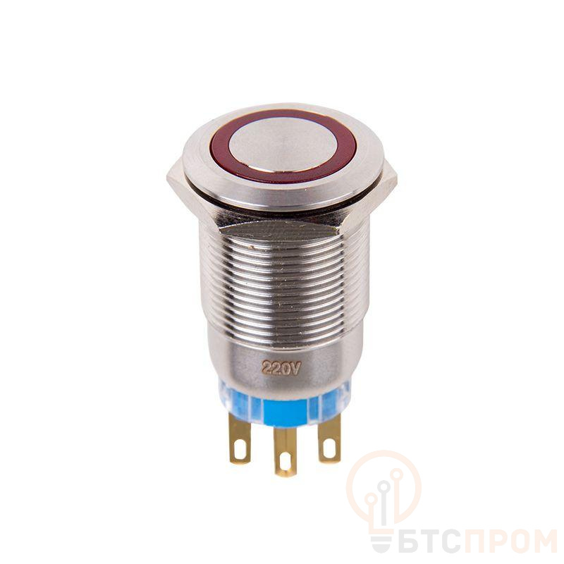 Кнопка антивандальная O19 250В Б/Фикс (5с) (ON)-OFF/(OFF)-ON красная предназначена для коммутации электрических цепей напряжением до 250В путем включения-выключения питающего провода. Металлические кнопки применяются в местах, где существует большой риск их повреждения (на различных производственных линиях, в лифтовых кабинах, около входной двери и т.д.), а также для декоративного оформления панелей управления. Главными отличительными особенностями такой кнопки являются металлическое исполнение и неуязвимость контактной группы, что обеспечит ей долговечное функционирование. Изделие состоит из двух основных частей - лицевой части (головки) и контактной, и имеет пружинный возвратный механизм. Монтаж осуществляется без применения винтов на плоских панелях толщиной от 0.5мм до 10мм. Подключение проводов осуществляется с помощью пайки или плоским разъемом. Основные характеристики: Номинальное напряжение: 250В; Номинальный ток: 5A; Тип переключения: (ON)-OFF/(OFF)-ON; Количество контактных групп: 1; Количество контактов в контактной группе: 3; Фиксация положений: отсутствует; Индикатор коммутационных положений: красный; Установочный диаметр: 19мм; Рабочая температура: от -25? до +85?; Ресурс: 10 000 циклов. Преимуществами использования данного изделия является надежность, быстрота и удобство монтажа.