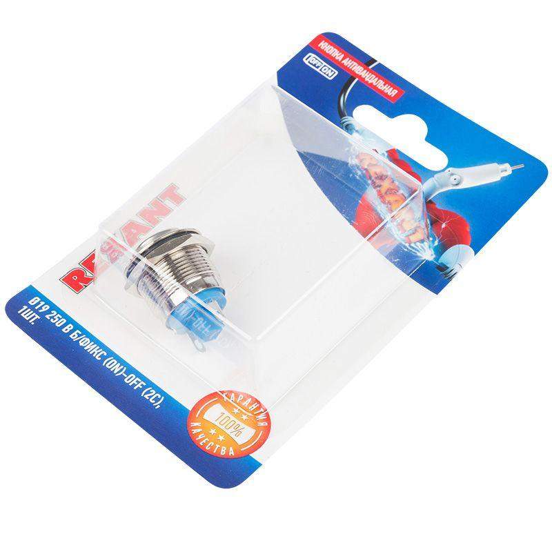 Технические характеристики: Номинальное напряжение и ток: 2A/36V(DC) 3A/250V(AC); Тип переключения: OFF-(ON); Количество контактных групп: 1; Количество контактов в контактной группе: 2; Фиксация положений: отсутствует; Индикатор коммутационных положений: отсутствует; Установочный диаметр: 19мм; Рабочая температура: от -25? до +85?; Степень защиты (IP): IP65; Ресурс: 10 000 циклов.