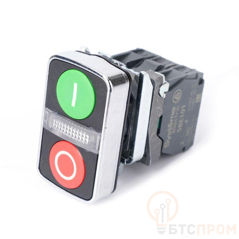 Кнопка двойная SB4 в сборе модуль 22мм зел."I"+сигнал. лампа+красн."О" металл 24ВDC 1НО+1НЗ SE SB4BW7A3741B5