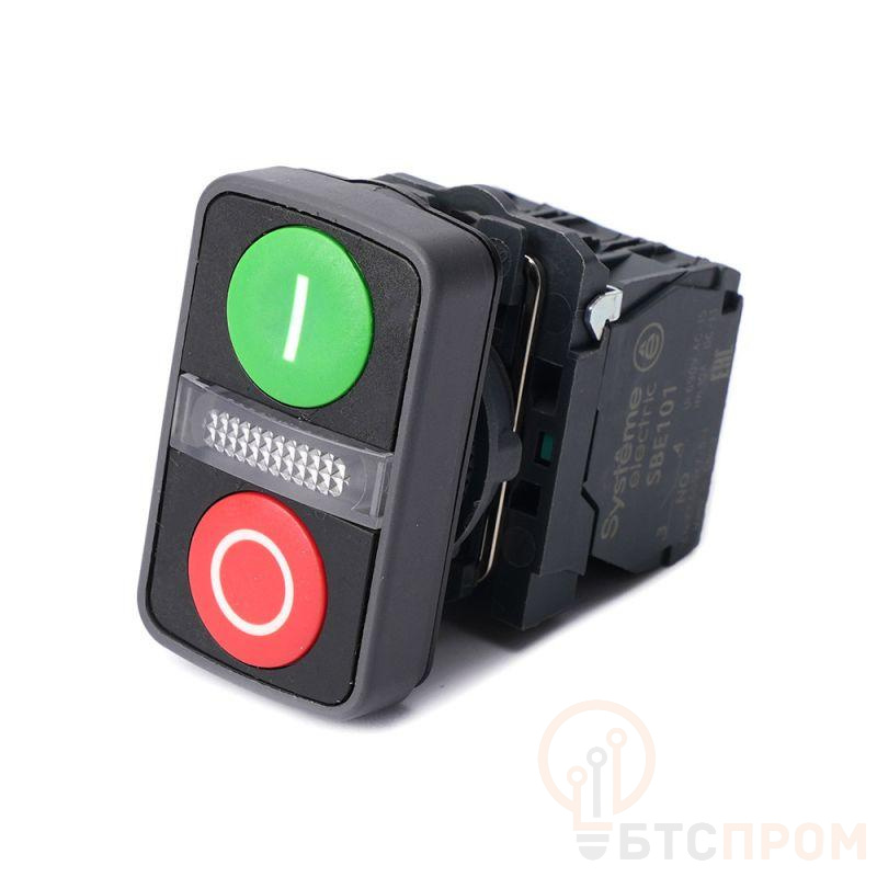 Кнопка двойная SB5 в сборе модуль 22мм зел."I"+сигнал. лампа+красн."О" пластик 230В AC 1НО+1НЗ SE SB5AW7A3741M5