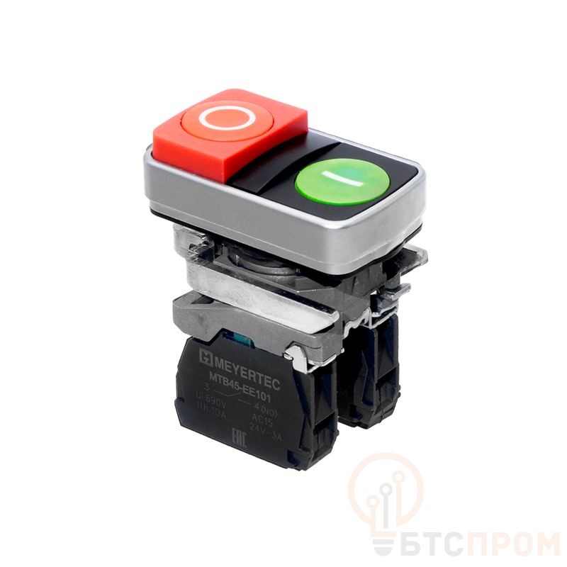 Кнопка управления двойная выступающая ОВЕН MTB4-BL8425 — это надежное устройство для промышленных систем автоматизации. Корпус из металла обеспечивает высокую прочность и устойчивость к механическим воздействиям. Степень защиты IP65 гарантирует полную защиту от пыли и струй воды, что позволяет использовать кнопку в сложных условиях цехов. Модель имеет две независимые группы контактов: 1 нормально разомкнутый (NO) и 1 нормально замкнутый (NC) контакт, что обеспечивает гибкость в коммутации цепей управления. Яркая цветовая маркировка «I+O» (включено/выключено) на красной и зеленой кнопках способствует быстрой и безошибочной идентификации состояния оборудования. Предназначена для монтажа в стандартное отверстие на панели управления. Основная сфера применения: управление станками, промышленными установками, вентиляционными системами и другими электротехническими комплексами, где требуются долговечные и защищенные органы управления.