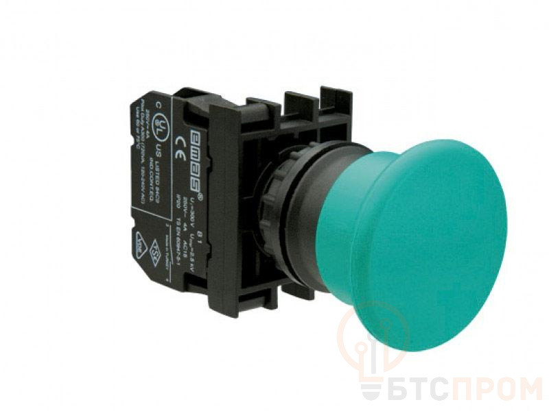 Кнопка управления "Грибок" B100MY от бренда EMAS — это надежная кнопка экстренного останова (стоп) с принудительным размыканием контактов (1НО) и функцией без фиксации. Характеризуется высокой степенью защиты корпуса IP65, что обеспечивает эффективную защиту от пыли и водяных струй, делая ее пригодной для эксплуатации в сложных промышленных условиях. Устройство имеет яркий зеленый цвет грибка для быстрой идентификации.