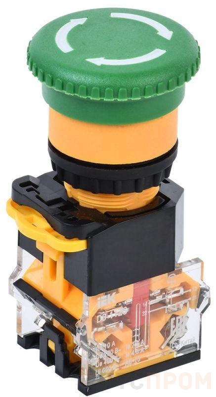 –Кнопка "Грибок" D8-11ZS d22мм 1НО+1НЗ поворотн. с фиксацией зел. IEK BBG30-11ZS-3-23-K06