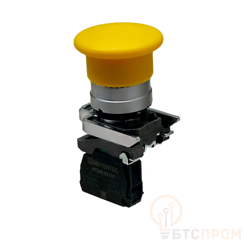 Кнопка управления грибовидная 40 мм MTB4-BC51 от компании ОВЕН — это надежное и долговечное устройство для промышленного применения. Модель оснащена пружинным возвратом и нормально разомкнутым (1NO) контактом. Корпус выполнен из металла с защитой от внешних воздействий по стандарту IP65, что обеспечивает стойкость к пыли и влаге. Яркий желтый цвет способствует быстрой идентификации на производстве.