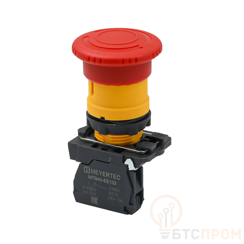 Кнопка грибовидная аварийной остановки 40мм возврат поворотом с фиксацией 1NC IP65 пластик MTB5-AS542 красн. ОВЕН 137250