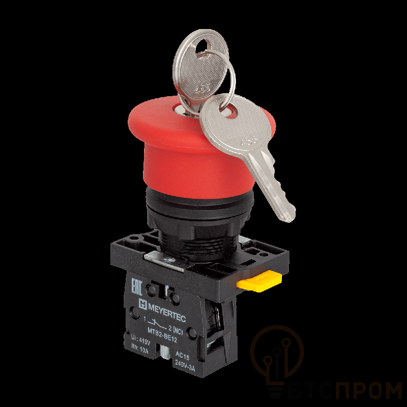 Кнопка грибовидная аварийной остановки с ключом 40мм возврат поворотом с фиксацией 1NC IP54 пластик MTB2-ES142 красн. ОВЕН 139423