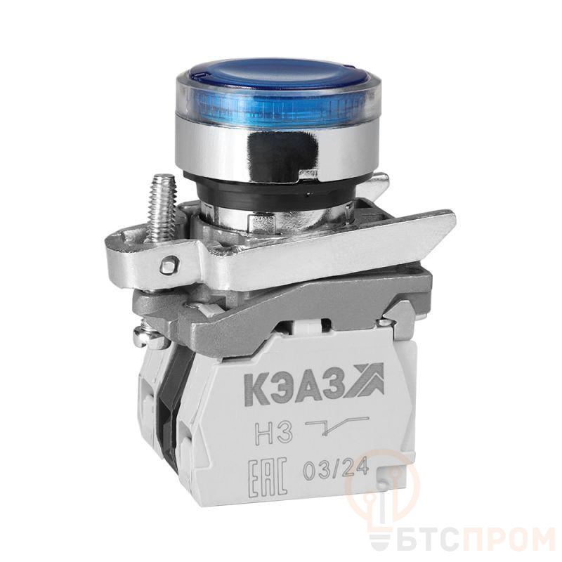 Кнопка управления КМЕ4122мЛС 220В от бренда КЭАЗ — это надежный и функциональный элемент для промышленных щитов и пультов управления. Модель обладает цилиндрической формой и оснащена встроенным индикатором синего цвета для визуального контроля статуса работы.
