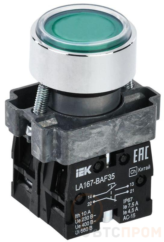 –Кнопка LA167-BAF35 d22мм 1НО+1НЗ зел. KARAT IEK BBT20-BAF35-3-22-67-K06