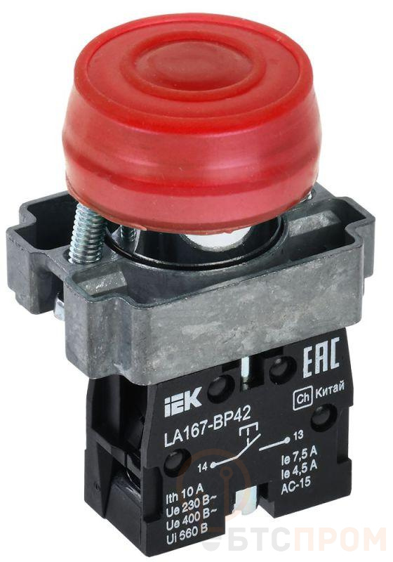 Кнопка LA167-BP42 d22мм 1НЗ красн. IEK BBT20-BP42-2-22-67-K04 фото в каталоге от BTSprom.by