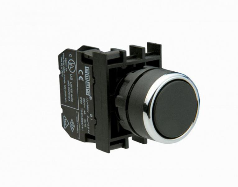 Кнопка нажимная круглая черная без фиксации с возможностью подсоединения блок контакта подсветки (1НО+1НЗ). Улучшены функциональные требования и упрощен монтаж кнопок, переключателей. Последовательно соединяемые, по принципу конструктора, корпус и контактные блоки. Надежные контактные блоки кнопок и переключателей в огнеупорном корпусе V0 PA6. Световая индикация состояния. Прочная кнопка из поликарбоната. Защищенные контакты кабельных вводов, обеспечивающие повышенную безопасность. Минимальный нагрев, максимальный срок службы с защитой светодиодов.