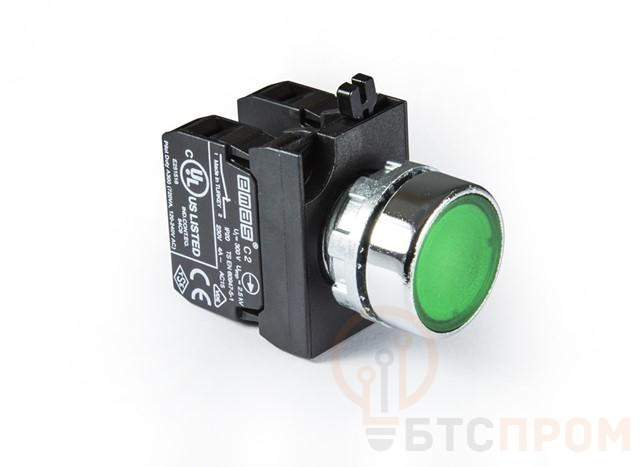Кнопка нажимная круглая CM202DY (2НЗ) зеленая EMAS