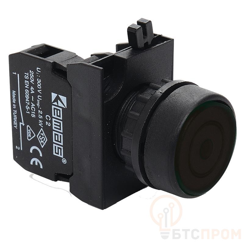 –Кнопка нажимная круглая с фиксацией (1НО) черн. EMAS CP100FH