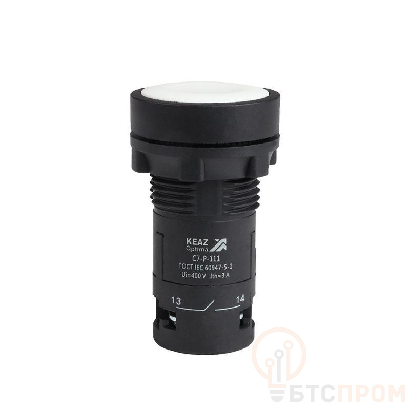 Кнопка OptiSignal Compact D22 С7-P-111 от бренда КЭАЗ — это современное и надежное устройство управления, предназначенное для коммутации электрических цепей в стационарных установках. Модель обладает компактным корпусом белого цвета (D22) и оснащена одной замыкающей (1НО) и одной размыкающей (1НЗ) контактной группой, что обеспечивает гибкость в построении схем управления.