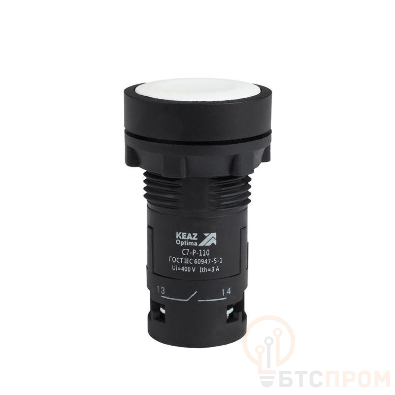 Кнопка OptiSignal Compact D22 С7-P-120 белая (2НО) от бренда КЭАЗ — это современное и надежное устройство управления, предназначенное для коммутации электрических цепей в стационарных установках. Модель XB7NA13 с двумя нормально разомкнутыми контактами (2НО) обеспечивает подачу сигналов и управление различными промышленными механизмами и системами.
