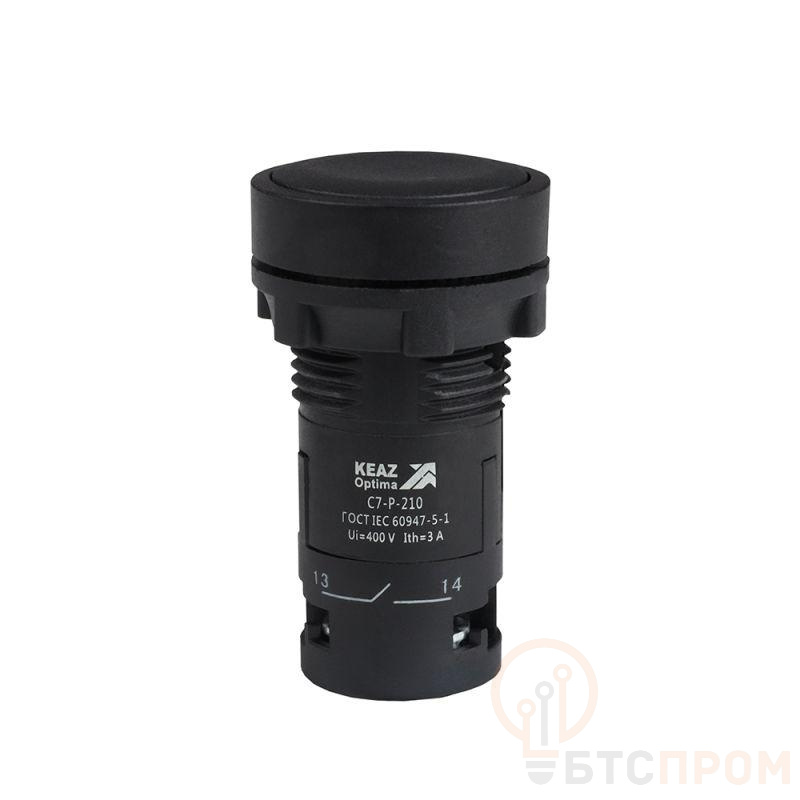 Кнопка OptiSignal Compact D22 С7-P-201 от бренда КЭАЗ — это современное и надежное устройство управления, предназначенное для коммутации электрических цепей в стационарных установках. Модель имеет черный цвет и исполнение с одной кнопкой (1НЗ — 1 нормально замкнутый контакт) и световой индикацией встроенной подсветки, что обеспечивает удобный визуальный контроль ее состояния.