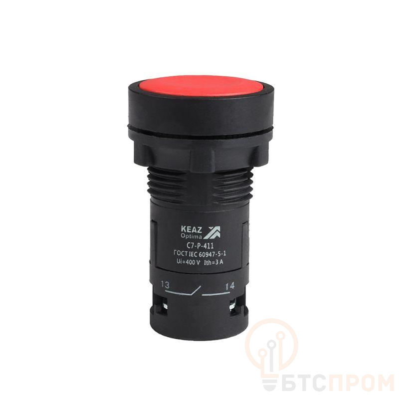 Кнопка управления OptiSignal Compact D22 C7-P-411 от бренда КЭАЗ — это компактное и надежное устройство для коммутации электрических цепей в промышленных щитах и пультах управления. Модель имеет универсальный монтажный диаметр 22.5 мм и оснащена одной замыкающей (1НО) и одной размыкающей (1НЗ) контактной группой, что обеспечивает гибкость в построении схем управления. Корпус выполнен в стойком к ударам пластике красного цвета с четкой лицевой маркировкой.