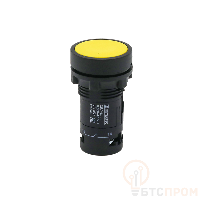 Яркий желтый цвет кнопки обеспечивает высокую визуальную заметность, что идеально для выделения функций пуска, включения или активации конкретных режимов работы. Монтируются такие кнопки на дверь шкафа или панель управления. Универсальное применение включает в себя станкостроение, системы вентиляции, конвейерные линии, насосные станции и другие сферы промышленности, где требуется надежное и долговечное коммутационное устройство.
