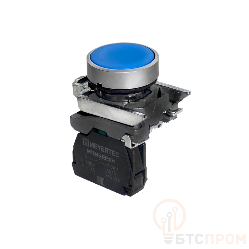 Кнопка управления плоская MTB4-BA61 от компании ОВЕН — надежный промышленный исполнительный механизм, предназначенный для коммутации электрических цепей управления в условиях повышенной влажности и запыленности. Корпус устройства выполнен из прочного металла и имеет степень защиты IP65, что обеспечивает полную защиту от пыли и струй воды. Кнопка имеет синий цвет и нормально-разомкнутый (1NO) контакт.