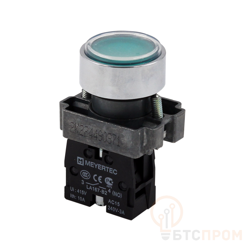 Устройство соответствует степени защиты IP67, что делает его полностью пыленепроницаемым и защищенным от кратковременного погружения в воду. Это позволяет использовать кнопку в сложных промышленных условиях, включая цеха с повышенной запыленностью, влажностью и на открытом воздухе. Контакты модуля — 1NO (нормально разомкнутый), рассчитаны на различные токи управления.
