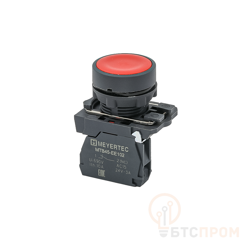 Корпус кнопки выполнен из прочного пластика, а цветовая индикация (красный) стандартно используется для функций «Стоп», «Аварийная остановка» или «Выключение». Монтаж осуществляется быстро и легко через отверстие в панели. Основная сфера применения включает станки, конвейерные линии, системы автоматизации зданий и другие промышленные установки, где требуется надежное и безопасное управление.