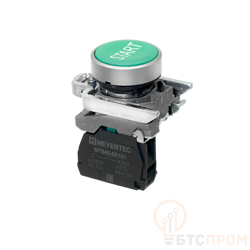 Кнопка управления плоская маркированная "START" MTB4-BA31601 от компании ОВЕН — это надежный и долговечный элемент управления для промышленного оборудования. Устройство обладает степенью защиты IP65, что обеспечивает полную защиту от пыли и водяных струй, позволяя использовать его в сложных производственных условиях. Корпус изделия выполнен из прочного металла, устойчивого к механическим воздействиям и вибрациям. Контактная группа представляет собой 1 нормально разомкнутый контакт (1NO), что идеально подходит для цепей запуска.