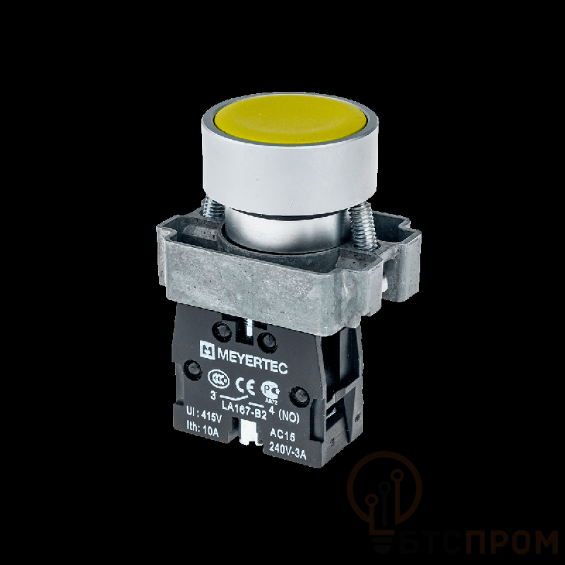 Устройство монтируется на дверь шкафа или панель управления через отверстие диаметром 22.5 мм. Яркая жёлтая окраска кнопки обеспечивает хорошую видимость и оперативное распознавание для запуска процессов или подачи сигнала. Широко применяется в машиностроении, на производственных линиях, в системах вентиляции и насосных станциях.