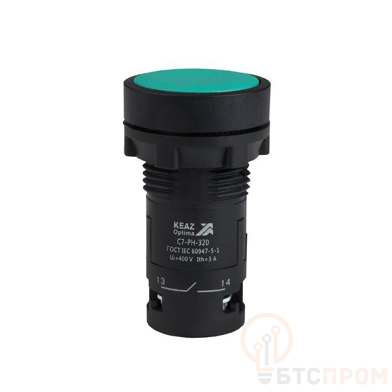 Кнопка с фиксацией OptiSignal Compact D22 С7-PH-320 зеленого цвета — это современное и надежное устройство управления от бренда КЭАЗ. Модель обладает компактными размерами и выполнена в привлекательном дизайне. Изделие имеет два нормально разомкнутых контакта (2НО) и предназначено для монтажа в круглое отверстие диаметром 22 мм.
