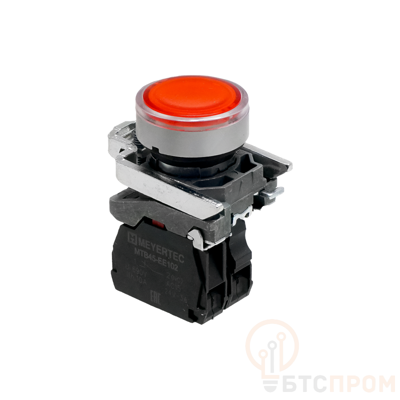 Ключевой особенностью данной модели является универсальная рабочая схема 1NC (нормально замкнутый контакт) и подсветка, которая облегчает визуальное опознавание и использование при недостаточном освещении. Кнопка рассчитана на напряжение 24В переменного и постоянного тока (AC/DC).