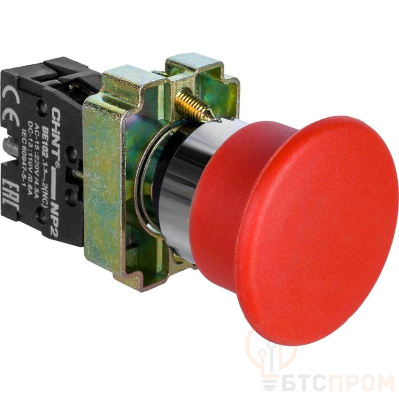 Кнопка управления "Грибок" NP2-BC42 d40мм (2) 1НЗ IP40 с самовозвратом без подсветки красн. CHINT 574846