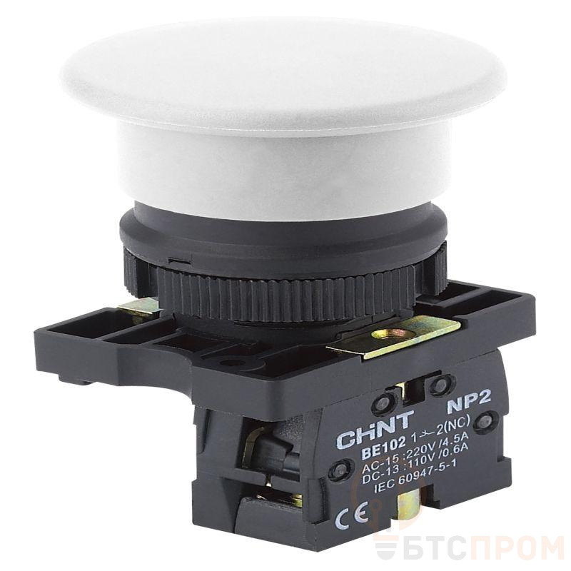 Кнопка управления "Грибок" NP2-EC12 d40мм 1НЗ IP40 с самовозвратом без подсветки бел. (R) CHINT 576002