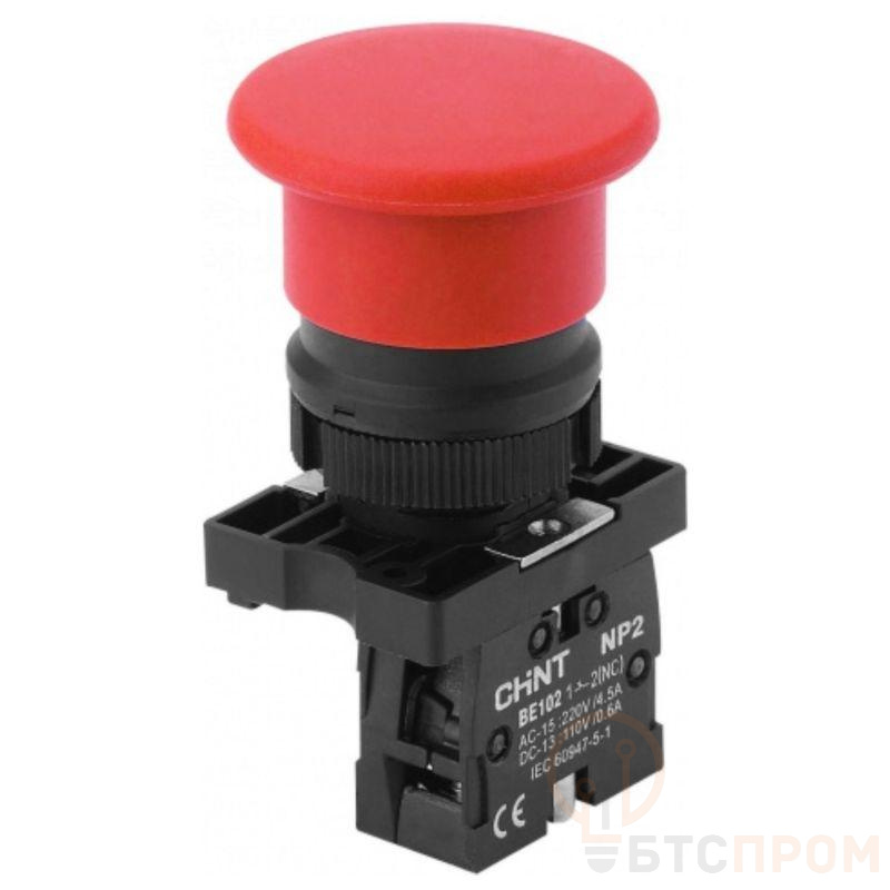 Кнопка управления "Грибок" NP2-EC42 d40мм (2) 1НЗ IP40 с самовозвратом без подсветки красн. CHINT 574820